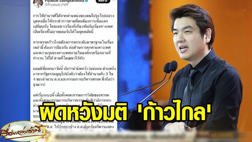 หากพรรคก้าวไกลต้องการยกระดับมาตรฐานในเรื่องเหล่านี้ ต้องการป้องกัน ต่อต้านการคุกคามทางเพศและความรุนแรงทางเพศภายในองค์กรหรือสถานที่ทำงาน ให้ได้ ตามที่โฆษณาไว้จริง