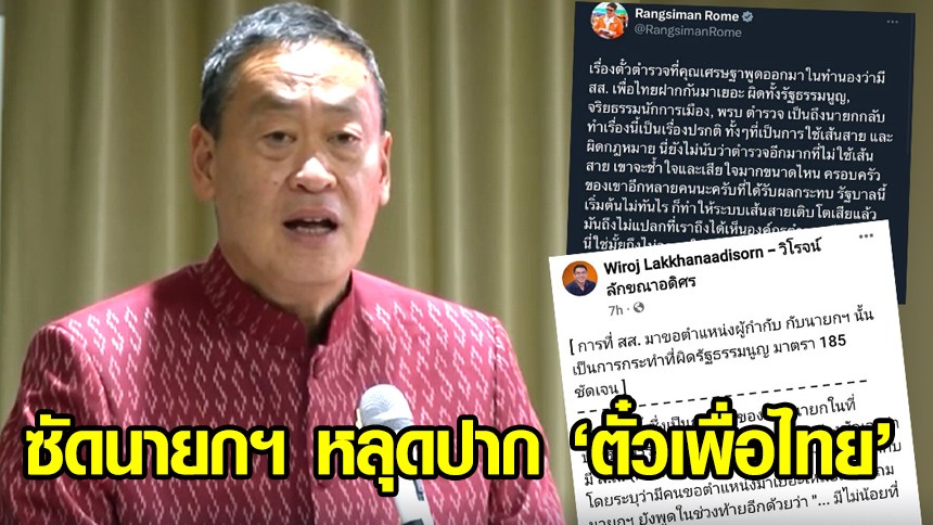 นายกฯ ร่วมประชุมพรรคเพื่อไทย หลุดปาก "สส.ฝาก ตำแหน่งผู้กำกับใหม่" ด้าน วิโรจน์ – โรม”จี้นายกฯ ชี้แจง ชี้ผิดรัฐธรรมนูญ ผิดจริยธรรมนักการเมือง ลั่น นายกฯ อย่าหนีการตรวจสอบ