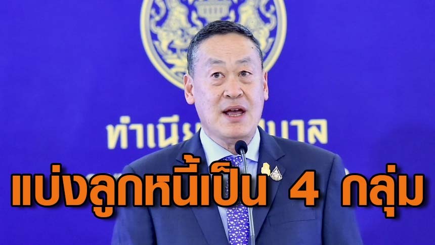 นายเศรษฐา ทวีสิน นายกรัฐมนตรีและรัฐมนตรีว่าการกระทรวงการคลัง กล่าวว่า การจัดการหนี้ทั้งระบบ จะแบ่งลูกหนี้เป็น 4 กลุ่ม