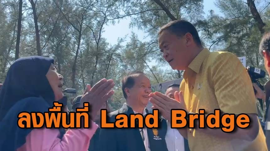 นายกฯ ลงดูพื้นที่จริงสร้าง Land Bridge เจอป้ายขึ้น "No landbridge" เจ้าตัวลุยรับหนังสือเอง บอกความเดือดร้อนของประชาชนเป็นหน้าที่รัฐบาล ลั่น ทำเมกะโปรเจค มีทั้งเห็นด้วย-เห็นต่าง ขออย่าทำเป็นเรื่องใหญ่-เรื่องโต โครงการเพิ่งเริ่ม ขอฟังคงามเห็นก่อน