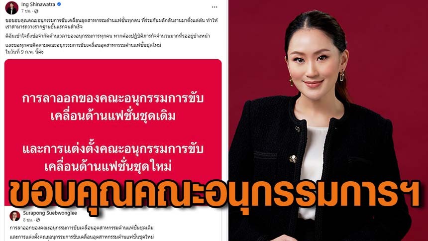 ล่าสุด “อุ๊งอิ๊ง” ขอบคุณคณะอนุกรรมการขับเคลื่อนด้านแฟชั่น ที่ร่วมผลักดันงานมาตั้งแต่ต้น เผยเข้าใจถึงข้อจำกัดด้านเวลา บอกให้ติดตามคณะอนุกรรมการฯชุดใหม่ 9 ก.พ. นี้