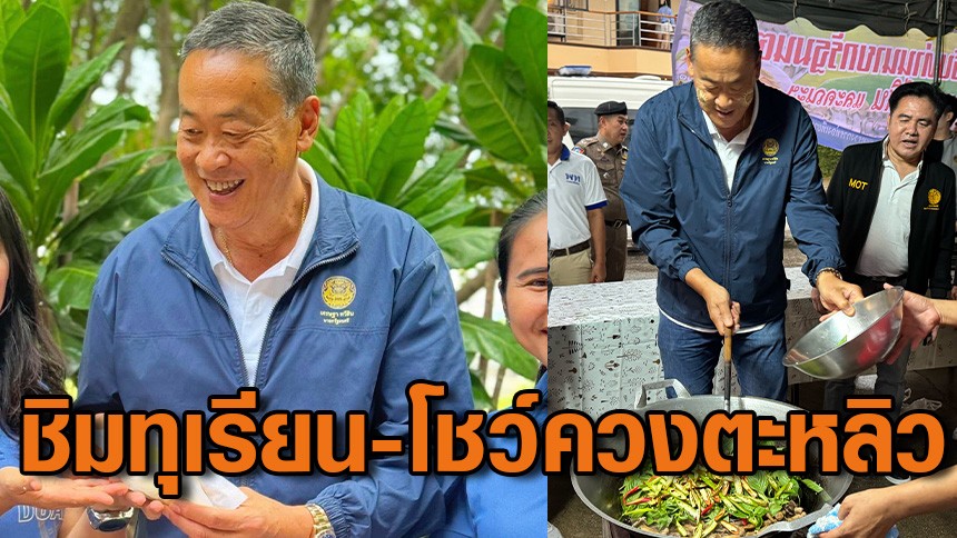 นายกฯ ชิมทุเรียนทองผาภูมิ ชมรสชาติดี - โชว์ลีลาควงตะหลิวทำเห็ดโคนผัดกระเพรา