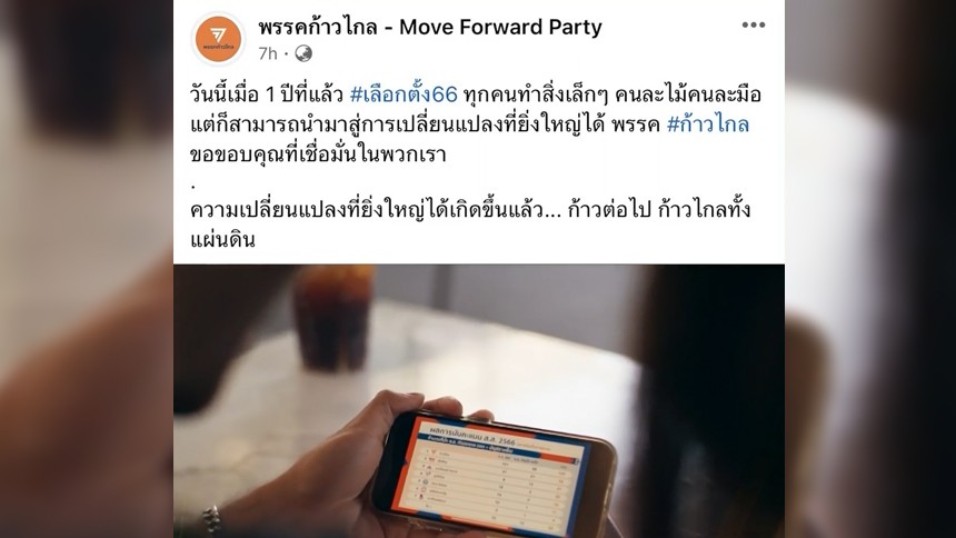 วานนี้ (13 พ.ค.) เพจเฟซบุ๊กพรรคก้าวไกล โพสต์คลิปวิดีโอโปรโมตครบรอบ 1 ปีของการเลือกตั้งทั่วไป พร้อมข้อความ ระบุว่า