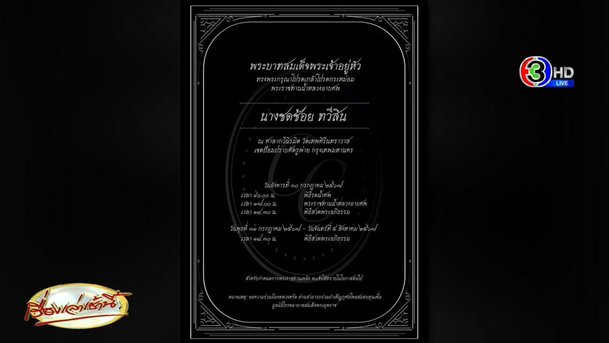 ทั้งนี้ พระบาทสมเด็จพระเจ้าอยู่หัว ทรงพระกรุณาโปรดเกล้าโปรดกระหม่อมพระราชทานน้ำหลวงอาบศพ ในวันนี้ (30 ก.ค. 67) เวลา 17.00 น. ณ ศาลากวีนริมิต วัดเทพศิรินทราวาส เขตป้อมปราบศัตรูพ่าย กรุงเทพมหานคร