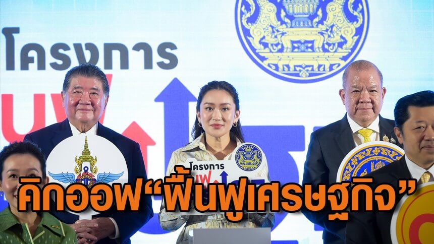 นางสาวแพทองธาร ชินวัตร นายกรัฐมนตรี เป็นประธานงานแถลงข่าว Kick Off เปิดตัว “โครงการฟื้นฟูเศรษฐกิจ” โดยมี นายภูมิธรรม เวชยชัย รองนายกรัฐมนตรีและรัฐมนตรีว่าการกระทรวงกลาโหม, นายพิชัย นริพทะพันธุ์ รัฐมนตรีว่าการกระทรวงพาณิชย์, นายพิพัฒน์ รัชกิจประการ รัฐมนตรีว่าการกระทรวงแรงงาน และนายสุชาติ ชมกลิ่น รัฐมนตรีช่วยว่าการกระทรวงพาณิชย์