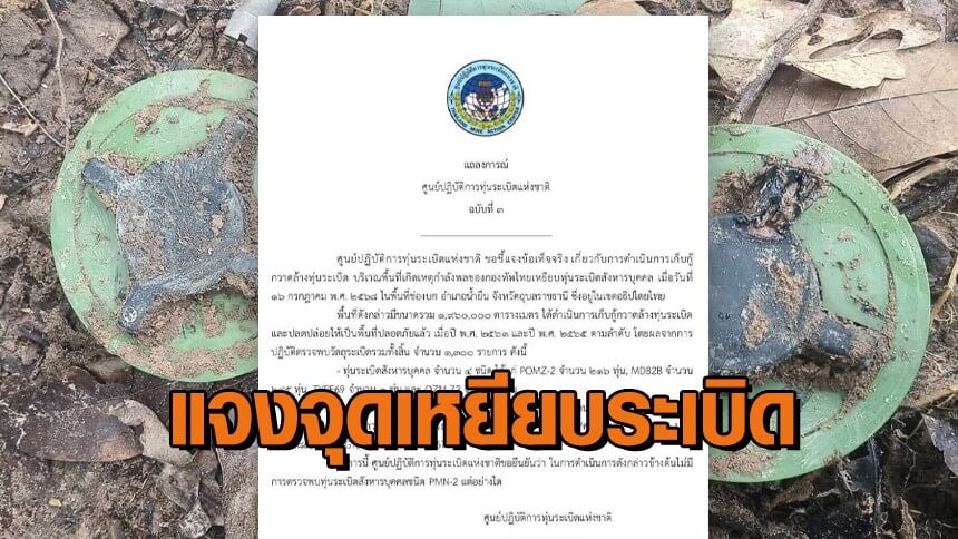 ศทช.แจงจุดทหารไทยเหยียบระเบิด เก็บกู้หมดตั้งแต่ปี 65 ยันไม่เคยตรวจพบทุ่นระเบิดสังหารบุคคล PMN-2