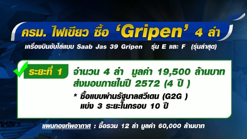 ลุ้น ครม.ไฟเขียว ทอ.ซื้อกริพเพน 4 ลำ วงเงิน 1.95 หมื่นล้าน