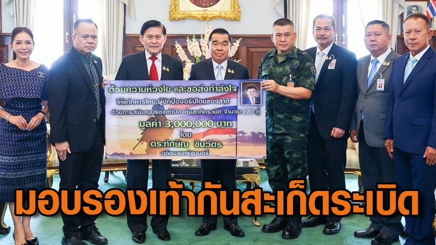 “ทักษิณ” ห่วงทหาร-หน่วย EOD มอบ “รองเท้าป้องกันสะเก็ดระเบิด” มาตรฐานเยอรมัน 120 คู่