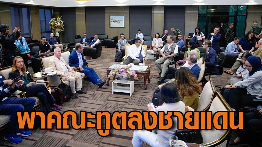 กต.นำคณะทูต 33 ประเทศ ลงพื้นที่ดูพื้นที่เสียหาย ชายแดนศรีสะเกษ-สำรวจแนววางทุ่นระเบิด