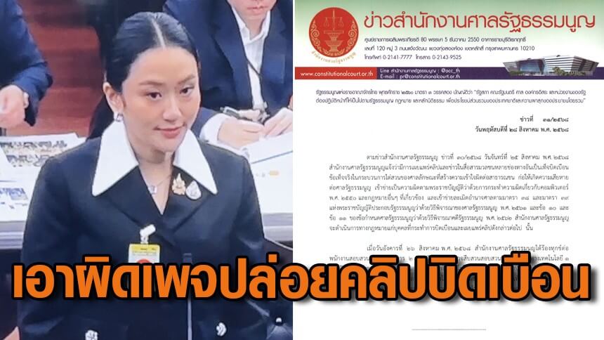 ศาลรัฐธรรมนูญ เอาผิด “เพจ-ช่องยูทูบ” เผยแพร่คลิปบิดเบือน “นั่งลงลูก”
