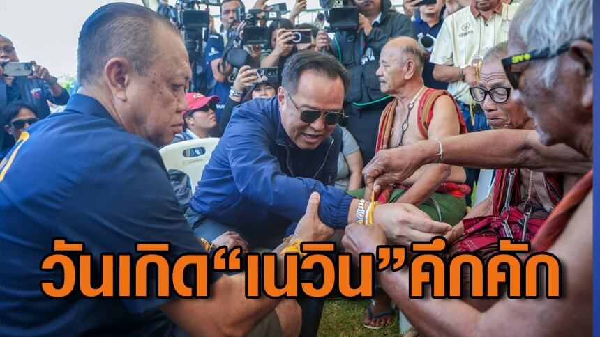วันเกิด 67 ปี "เนวิน" คึกคัก “ครูใหญ่” กวักมือเรียก “อนุทิน” ให้หมอช้างผูกข้อมืออวยพรนั่งนายกฯอีก 4 ปี