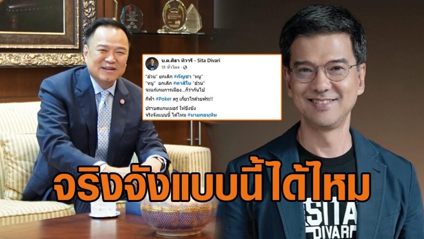'ศิธา' ถาม 'อนุทิน' ปราบสแกมเมอร์ให้ขึงขัง จริงจัง แบบห้ามอนุญาตเล่นกีฬาไพ่โป๊กเกอร์ ได้ไหม