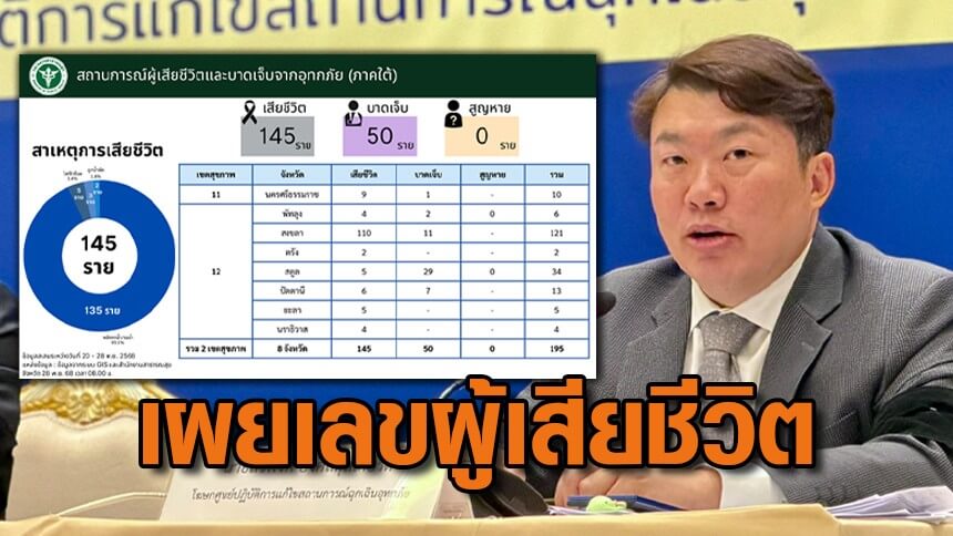 ศป.กฉ.แถลง ผู้เสียชีวิตน้ำท่วมใต้ 145 ราย ไม่แบ่งเคสรายงานแล้ว