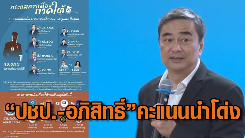"นิด้าโพล" เผยผลโพลกระแสการเมืองภาคใต้ "ปชป.-อภิสิทธิ์" คัมแบ้ก คะแนนนำโด่ง