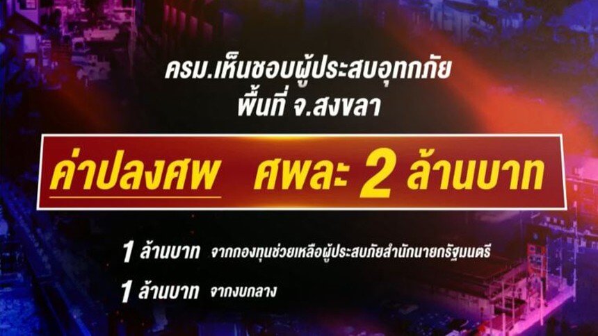 ครม.เห็นชอบ ค่าปลงศพ 2 ล้าน เฉพาะสงขลา - ออก 3 มาตรการเยียวยาผู้ประสบอุทกภัย ด้านการเงิน