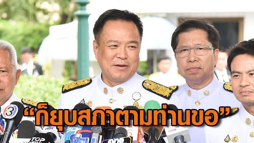 “ก็ท่านให้ผมมาเป็นนายก ท่านบอกท่านไม่สนับสนุนแล้ว ท่านขอให้ผมยุบสภา ผมก็ทำตามท่าน เป็นไปตามมารยาทที่มันควรจะเป็น”