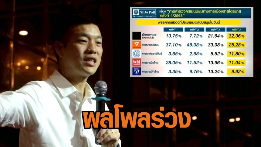 'เท้ง' เผยหลังผลโพลร่วง ชี้เลือกตั้ง 69 ตัดสินอนาคตประเทศ มั่นใจปชช.เห็นผลงานที่ผ่านมาแม้เป็นฝ่ายค้าน