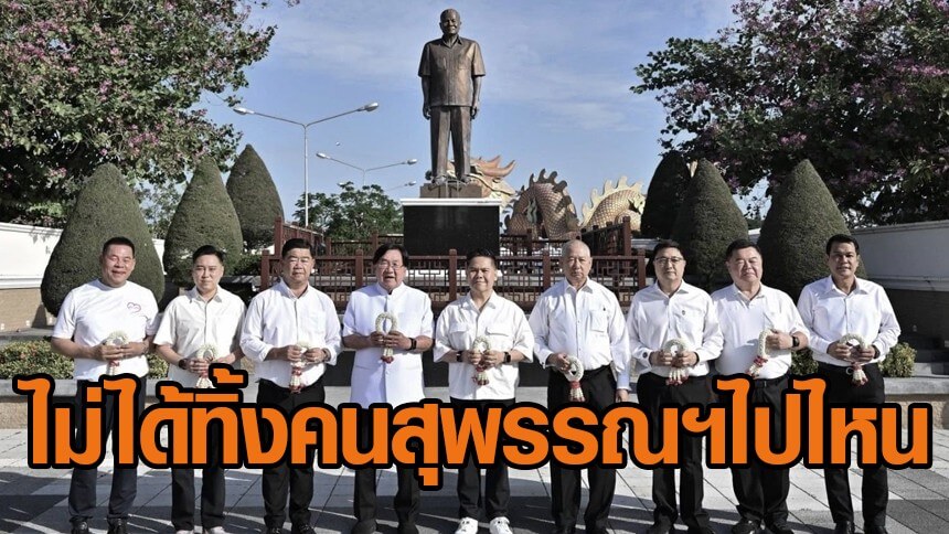 'วราวุธ' นำทีม ไหว้อนุสาวรีย์บรรหาร ก่อนสมัครเข้าภูมิใจไทย ลั่นไม่ได้ทิ้งคนสุพรรณฯไปไหน