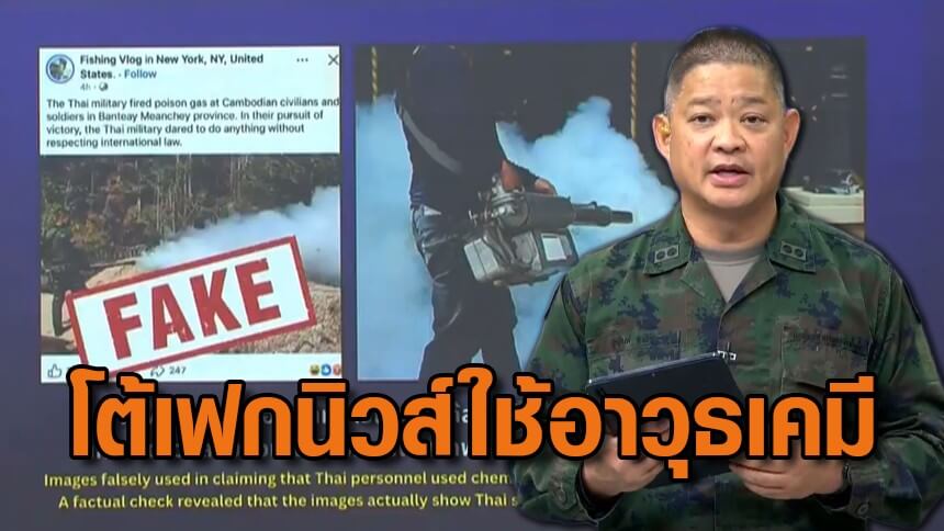 ศูนย์แถลงข่าวร่วมไทย-กัมพูชา โต้เฟกนิวส์เขมร ไทยใช้อาวุธเคมี ตรวจสอบพบใช้ภาพฉีดพ่นป้องกันยุงใส่ร้าย