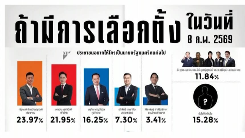 ยังไม่มีคนที่ใช่! เปิดสารพัดโพล คนไทยหนุนใครนั่งนายกฯ เลือกพรรคไหน เลือกตั้ง ก.พ.69