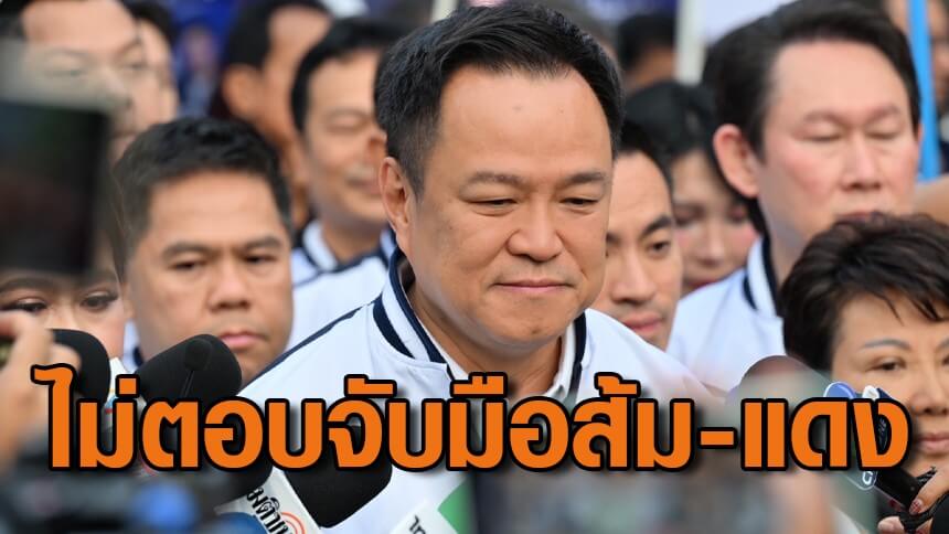 "อนุทิน" ปัดตอบปมจับมือส้มหรือแดง ชี้ "เท้ง" ไม่มีนโยบายหาเสียงแก้ ม.112 ทำประชาชนสบายใจ
