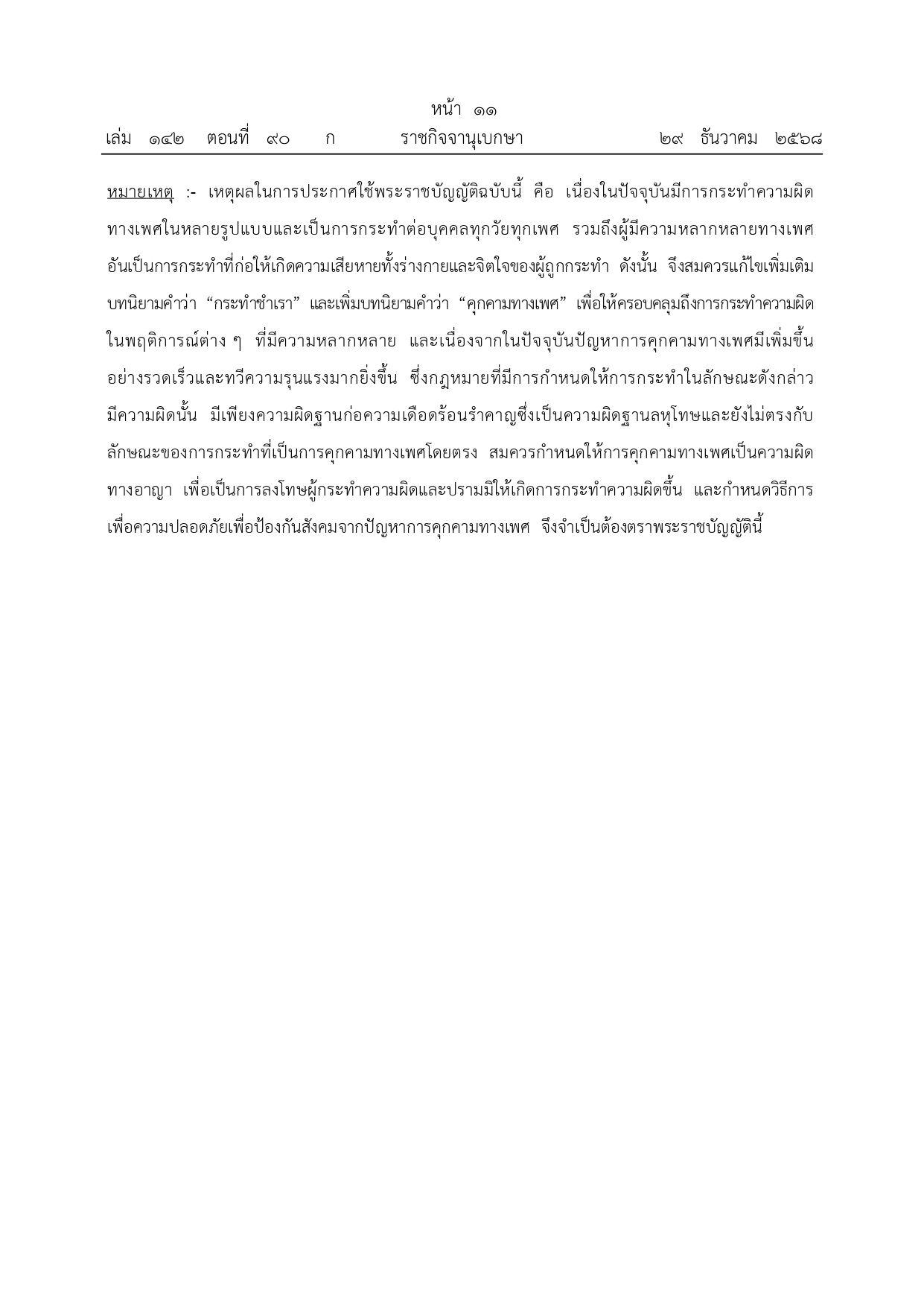 แท็กที่เกี่ยวข้อง ราชกิจจานุเบกษา ,คุกคามทางเพศ