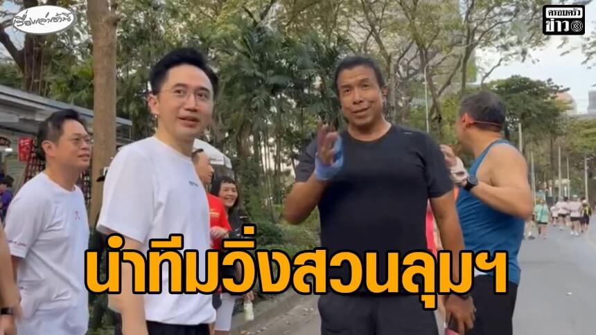 'ยศชนัน' นำทีมเพื่อไทยหาเสียง วิ่งสวนลุมพินี เจอ 'ชัชชาติ' ชนหมัด-วิ่งคู่