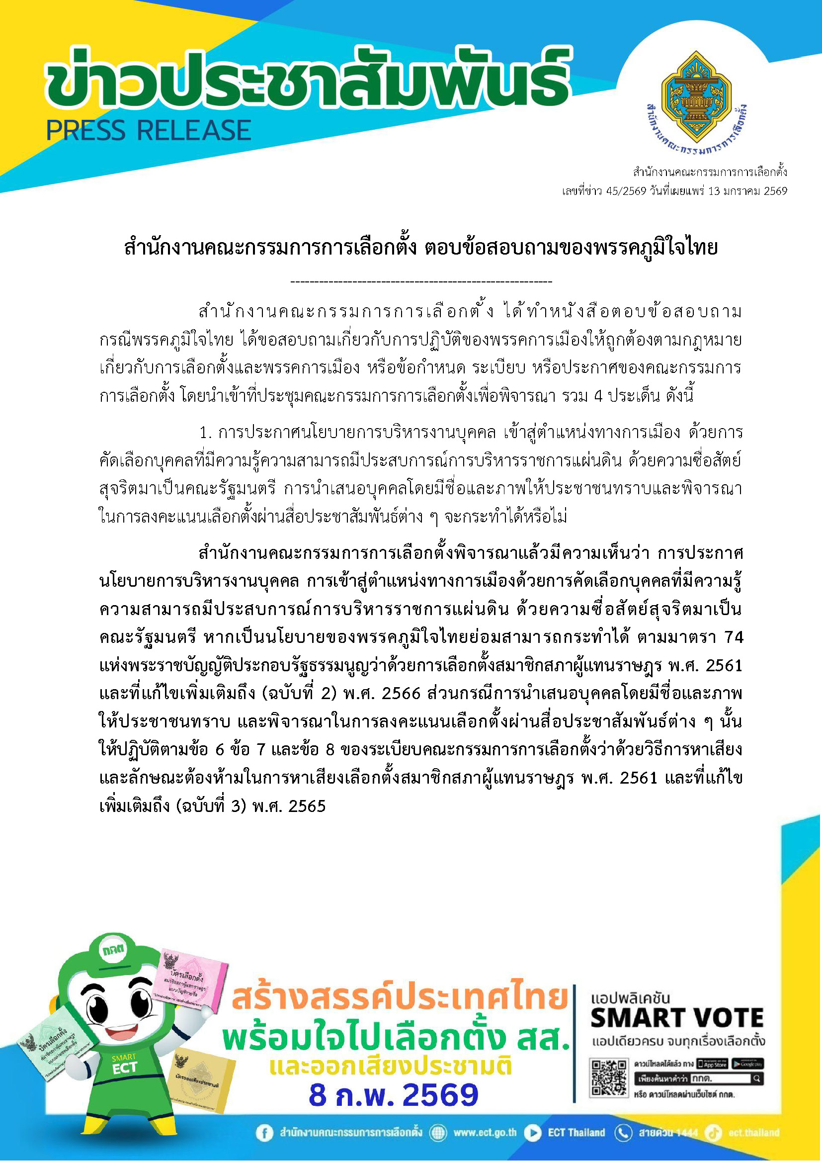 แท็กที่เกี่ยวข้อง กกต. ,พรรคภูมิใจไทย ,เลือกตั้ง69