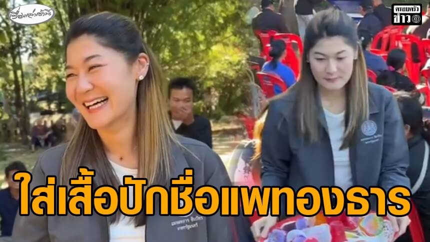 “กานต์ สุดารัตน์” ภูมิใจไทย ลงคลิปใส่เสื้อปักชื่อ อดีตนายกฯ “แพทองธาร” แจกน้ำชาวบ้าน แม้ย้ายพรรคแล้ว
