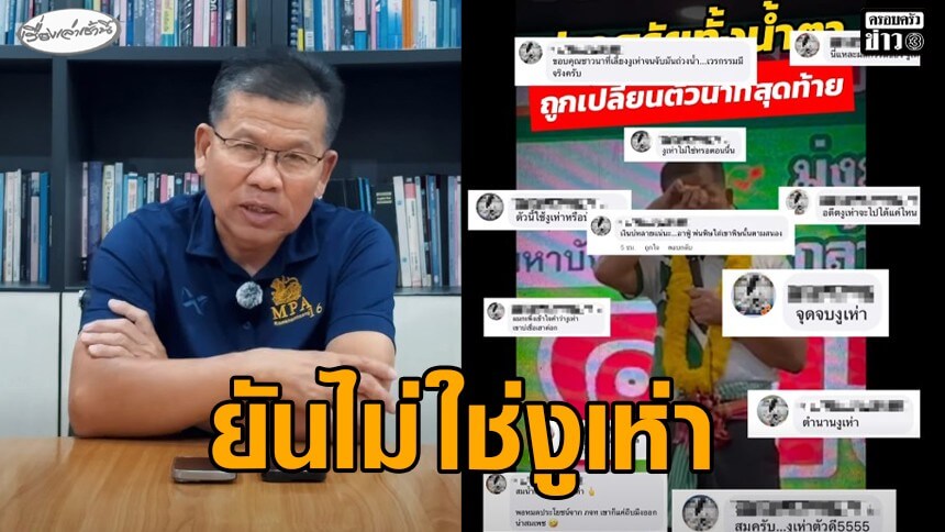 ฉะนั้นกราบเรียนพี่น้องประชาชนว่า ผมไม่ใช่งูเห่า แล้วคำว่างูเห่ามันโหดร้าย แล้วมันทำให้คนที่ไม่ได้ดูรายละเอียดเลย เข้าใจผิดไป ทำให้เป็นผลเสียกับเรา เป็นผลเสียในทางการเมือง กว่าจะกู้มาได้ ก็เพิ่งจะมาเป็นวันนี้แหละครับ อ๋อเจตนาจริงๆ คืออยากจะเป็น สส.เขต อยากช่วยพี่น้องประชาชน อยากจะทำพื้นที่เฉพาะเจาะจอง”