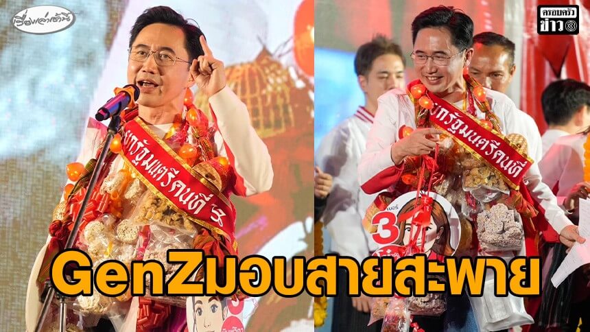 แดง GenZ อำนาจเจริญ มอบสายสะพายให้ “ยศชนัน” ตะโกนเชียร์ “นายกฯ เชนๆๆ” ด้าน “ณัฐวุฒิ” บอกอำนาจเจริญแข่งกันระหว่าง “สมหญิง-สมรวย” เชียร์ใครขอให้ดูที่มา ดูนโยบายที่ทำได้จริง เลือกเพื่อไทย 2 ใบเข้าไปเปลี่ยนรัฐบาล