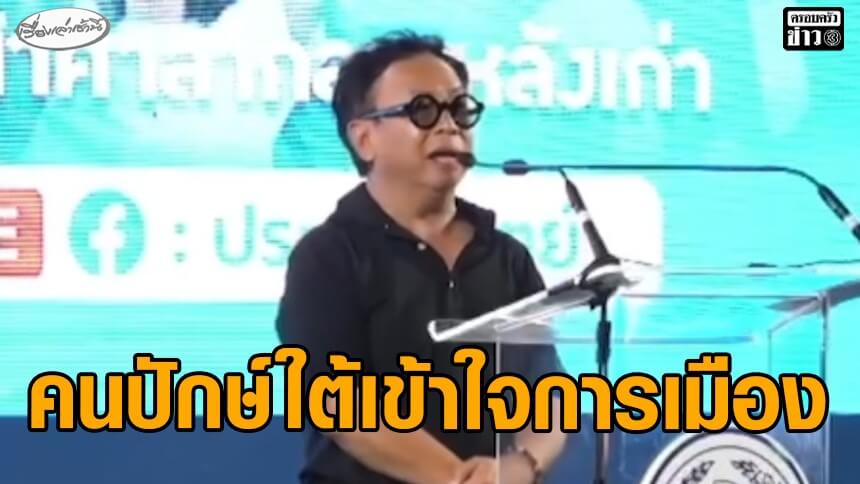 นายสาทิตย์ กล่าวอีกว่า มีอีกพรรคการเมืองส่งคนไปปราศรัยว่า “สมบัติพ่อเฒ่า” คือการไม่คิดจะเปลี่ยน ยึดของดั้งเดิม ตนเองต้องขอโทษ ของเดิมถ้ามันดี เราเก็บไว้บนหิ้ง เคารพบูชาแล้วไม่ดีหรือ ถ้าคิดแต่จะเปลี่ยนเปลี่ยน โดยไม่ดูรากฐาน หรือส่งผลกระทบกับอะไร คำว่า “สมบัติของพ่อเฒ่า” เพราะคนปักษ์ใต้ไม่เคยลืมรากเหง้าของตัวเอง ว่า เราคือคนที่เข้าใจทางการเมือง มีจิตสำนึกทางการเมือง