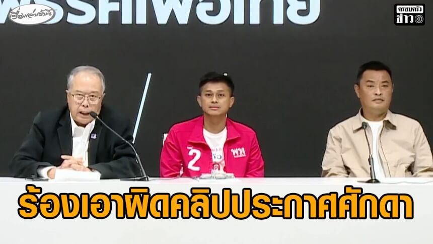 “ชูศักดิ์” รองหัวหน้าพรรคเพื่อไทย พร้อมด้วย “พนม” ผู้สมัคร สส.กาญจนบุรี และอดีต “สจ.ตูน” เปิดหน้าชนคลิป “ประกาศศักดา” ตั้งโต๊ะแถลงร้อง กกต.เอาผิดกฎหมายเลือกตั้ง บ่ายนี้ เหตุทำเพื่อไทยเสียหาย กระทบคะแนนนิยม ด้าน อดีต สจ.ตูน ยอมรับกลัว แต่ยึดความถูกต้องและประชาชน