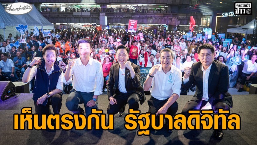 4 พรรคเห็นตรงกันมี 'รัฐบาลดิจิทัล' รวมแอป ง่ายต่อการตรวจสอบทุนเทา 'อภิสิทธิ์' บอกต้องออก พ.ร.ก. เพิ่มอำนาจยึดทรัพย์ได้ หากแจงที่มาไม่ได้ ขณะ ‘เท้ง’ คลัอยตาม ปชป. กา 2 ใบ อย่าแบ่งใจครึ่งพรรค ด้าน 'ศุภจี-ยศชนัน' เถียงกันเดือด เคลมผลงานรวมแอป ทำกองเชียร์เพื่อไทยโห่