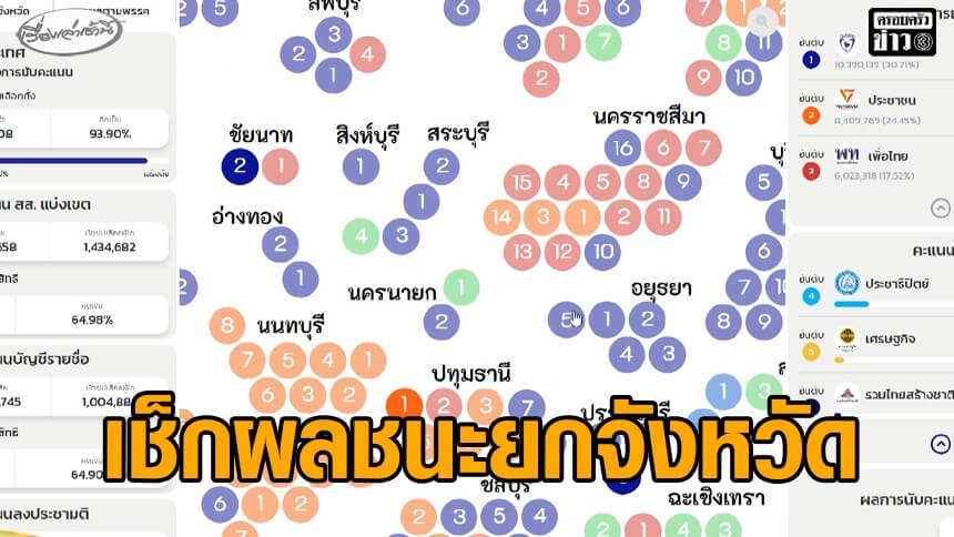 เปิดจังหวัดไหนบ้าง 'พรรคประชาชน' - 'ภูมิใจไทย' ชนะยกจังหวัด