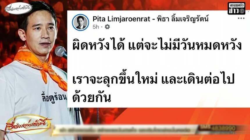 'พิธา' ให้กำลังใจ ผิดหวังได้ แต่จะไม่มีวันหมดหวัง - เปิดโพสต์ 'โอม ค็อกเทล-จ๋าย ไททศมิตร'