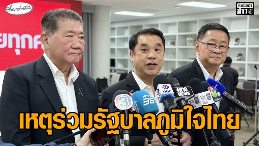 3 แกนนำพรรคเพื่อไทย เผยเหตุร่วมรัฐบาลภูมิใจไทย อยากผลักดันนโยบาย ยันยังไม่คุยโควตา - ตำแหน่ง ขอลืมความขัดแย้ง เพื่อเดินหน้าประเทศ “ภูมิธรรม” ลั่นไม่มีอะไรไม่กล้า เขากระโดง - ฮั้ว สว.เดินหน้าตามกระบวนการ