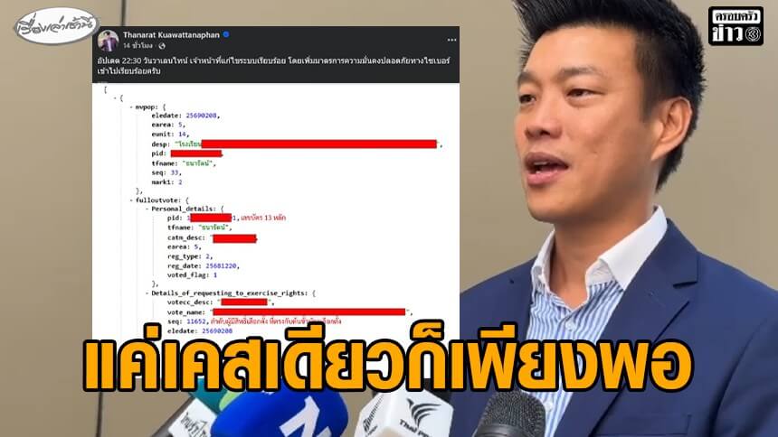 และยังมีการโพสต์เสริมอีกว่า “โอเค ผมได้ภาพชัดๆ มาแล้วครับ มีคนดูดรายชื่อผู้มีสิทธิ์เลือกตั้งที่เพิ่งหลุด ไปรวมกับข้อมูลเดิมที่หลุด ได้ชุดข้อมูลที่น่าสะพรึงจริง ๆ ครับ รู้ยันชื่อพ่อชื่อแม่ ในกลุ่มซื้อขายข้อมูลชุดนี้กันแค่หลักร้อยบาทครับ”