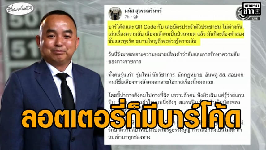 รองผู้ว่าฯโคราช ป้อง กกต.ปมบาร์โค้ดบัตรเลือกตั้ง เทียบลอตเตอรี่ก็มีบาร์โค้ด