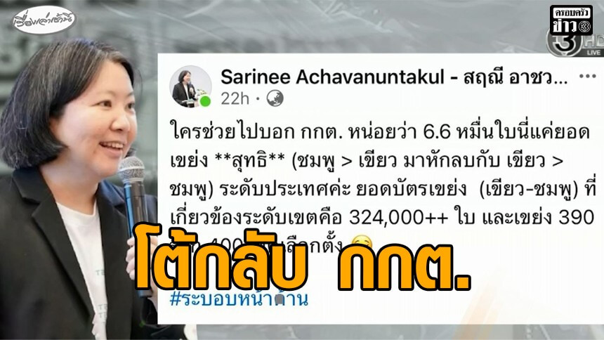 'สฤณี' โต้กลับ กกต. หลังบอกยอดบัตรเขย่ง 3.2 แสนใบ ไม่เป็นความจริง
