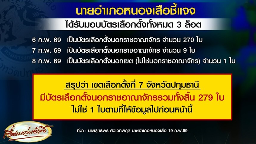 ‘นายอำเภอหนองเสือ’ ขอโทษปมบัตรนอกราชอาณาจักร เขต 7 ปทุมธานี คลาดเคลื่อนยันตัวเลขจริง 279 ใบ
