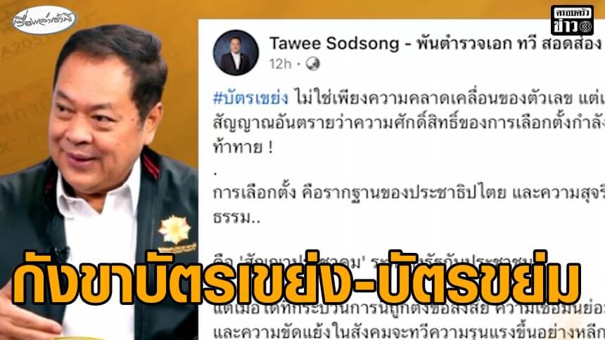 'ทวี' กังขา บัตรเขย่ง-บัตรขย่ม หลายแสนใบ จี้ กกต.แจง กู้วิกฤตศรัทธา