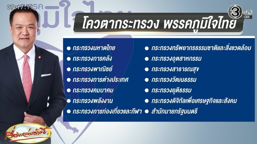 เค้าลางเริ่มชัด! สะพัดโผ ‘ครม.อนุทิน 2’ รมต. ‘ภูมิใจไทย’ 19 ที่นั่งคุม 14 กระทรวง แบ่งเค้ก ‘เพื่อไทย’ 8 ที่นั่ง