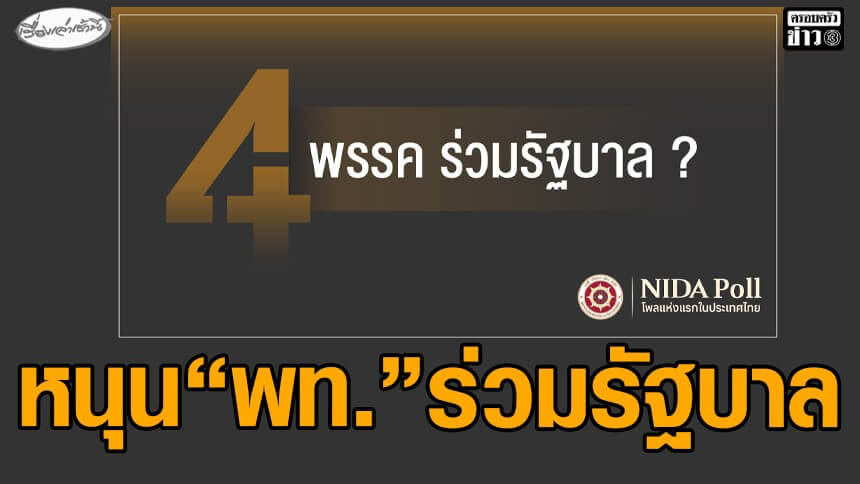 ศูนย์สำรวจความคิดเห็น “นิด้าโพล” สถาบันบัณฑิตพัฒนบริหารศาสตร์ (นิด้า) เปิดเผยผลการสำรวจ เรื่อง “สี่พรรค ร่วมรัฐบาล ?” ทำการสำรวจระหว่างวันที่ 23-24 กุมภาพันธ์ 2569 จากประชาชนที่มีอายุ 18 ปีขึ้นไป กระจายทุกภูมิภาค ระดับการศึกษา อาชีพ และรายได้ ทั่วประเทศ รวมจำนวนทั้งสิ้น 1,310 หน่วยตัวอย่างเกี่ยวกับความคิดเห็นของประชาชนในการเข้าร่วมจัดตั้งรัฐบาลกับพรรคภูมิใจไทย การสำรวจอาศัยการสุ่มตัวอย่างโดยใช้ความน่าจะเป็นจากบัญชีรายชื่อฐานข้อมูลตัวอย่างหลัก (Master Sample) ของ “นิด้าโพล” สุ่มตัวอย่างแบบหลายขั้นตอน (Multi-stage Sampling) เก็บข้อมูลด้วยวิธีการสัมภาษณ์ทางโทรศัพท์ โดยกำหนดค่าความคลาดเคลื่อนไม่เกิน 0.05 ที่ระดับความเชื่อมั่น ร้อยละ 97.0