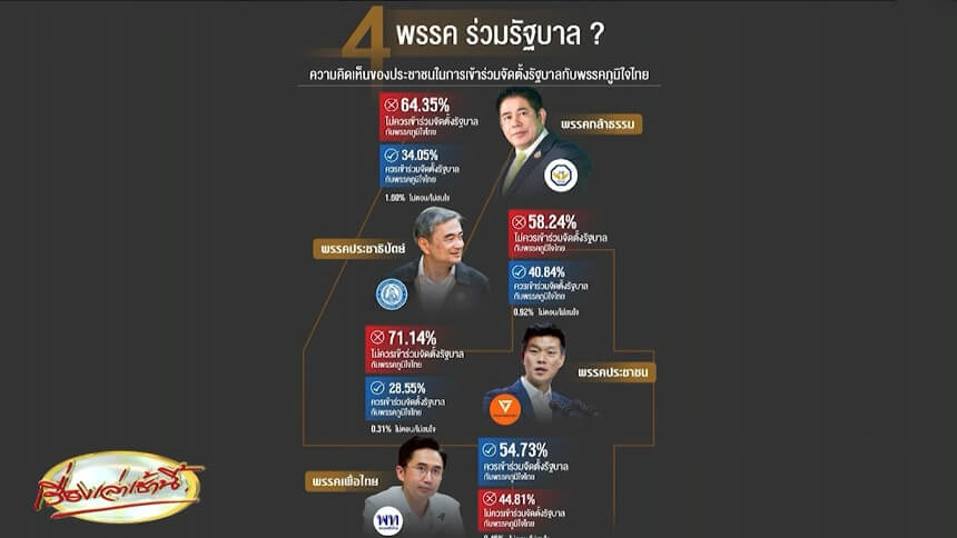 'นิด้าโพล' เผยประชาชนไม่เห็นด้วย 'กล้าธรรม-ปชน.-ปชป.' ร่วมรัฐบาล