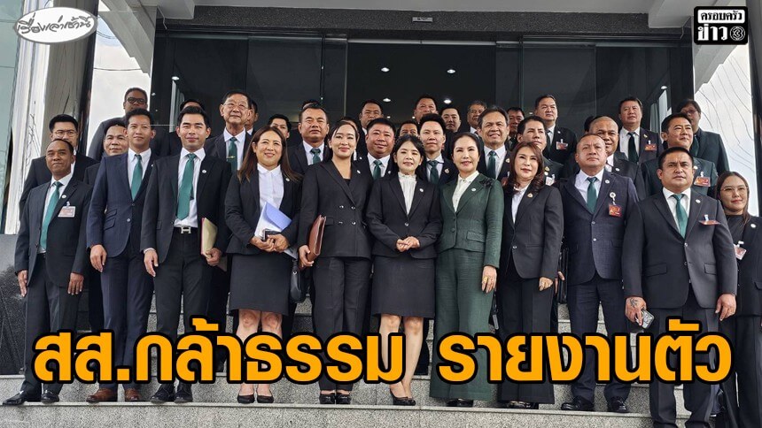 บรรยากาศ พรรคกล้าธรรมก่อน สส . เดินทางไปรายงานตัวที่สภาผู้แทนราษฎร พรรค ได้เตรียมรถบัสสีขาว 2 คัน ให้สส. ของพรรค 54 คน เดินทางเข้ารายงานตัวสมาชิกสภาผู้แทนราษฎร ชุดที่ 27 ต่อสำนักงานเลขาธิการสภาผู้แทนราษฎร โดยสส.ระบบเขตทยอยเดินทางมาที่ทำการพรรคอย่างคึกคัก ซึ่ง สส.ทั้งหมดของพรรคได้ผูกเนกไทสีเขียว และติดเข็มกลัดโลโก้พรรคกล้าธรรมที่หน้าอกเสื้อ