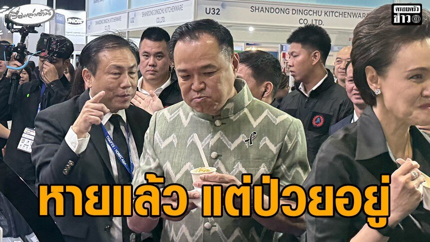 “อนุทิน” นายกรัฐมนตรี เปิดงาน THAIFEX - HOREC ASIA 2026 ชิมสินค้าฝีมือคนไทย บอกหายป่วยแล้วหลังลาประชุม ครม. เมื่อวานนี้ เจอนักข่าวจี้ถามเรื่องการเมือง ตอบกลับ ยังป่วยอยู่ เตรียมคุยทูตออสเตรเลียหารือซื้อพลังงานบ่ายนี้ ยันมีกระทรวงพลังงานรับผิดชอบหาแหล่งน้ำมันเพิ่ม