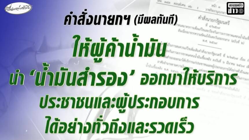 ราชกิจจานุเบกษา เผยแพร่คำสั่งนายกรัฐมนตรี ให้ผู้ค้าน้ำมันนำน้ำมันสำรอง ออกมาให้บริการประชาชนและผู้ประกอบการ มีผลทันที