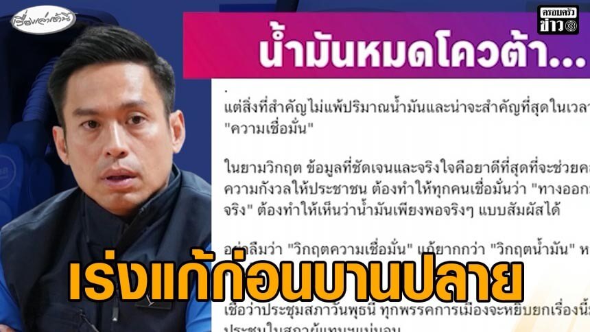'กรวีร์' ภูมิใจไทย แนะเร่งแก้ปัญหาก่อนลุกลามบานปลาย ชี้วิกฤตความเชื่อมั่นแก้ยากกว่าวิกฤตน้ำมัน