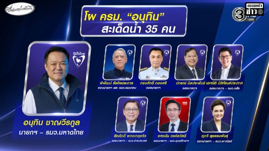 สะเด็ดน้ำแล้ว! เปิดโผ 'ครม.อนุทิน 2' 35 คน 'บวรศักดิ์' ไม่ได้ไปต่อ ลือสาเหตุ 'กล้าธรรม' ไม่ได้ร่วม